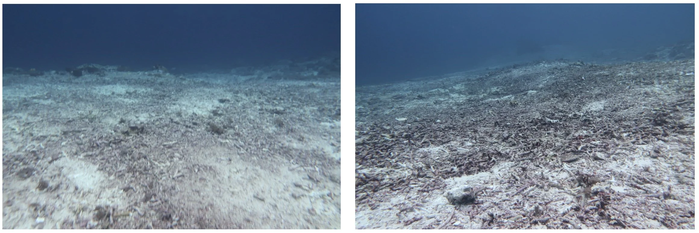 Initial surveys of the Mangrove Reef site in 2023 showed benthic substrate composition of almost 100% dead coral rubble in the impacts areas. A large area of broken and dead coral rubble has formed on an area of gently sloping reef along the north-east coastline of Nusa Lembongan. As seen in many areas of SE Asia, when reef areas turn to rubble they are rarely able to recover naturally back into a functioning coral reef (Fox et al. 2003). Rubble areas have actually been increasing in size due to erosion in currents and smothering of adjacent and down-slope reef area.